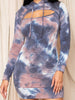 Turn heads in this soft fleece tie-dye print sweater dress. Featuring a bold bust cutout for a flirty edge.  Designed with long sleeves and a hoodie complete with adjustable drawstrings,