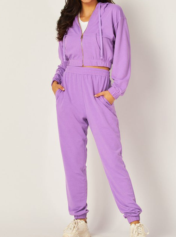 Meet your new off-duty favorite. This French Terry Cropped Hoodie & Jogger Set is crafted from ultra-soft, brushed micro-terry fabric for unbeatable comfort with a street-ready look. The cropped zip hoodie features a relaxed fit with an adjustable hood, while the matching joggers deliver all-day stretch and softness. Perfect for lounging, errand runs, or casual weekends.